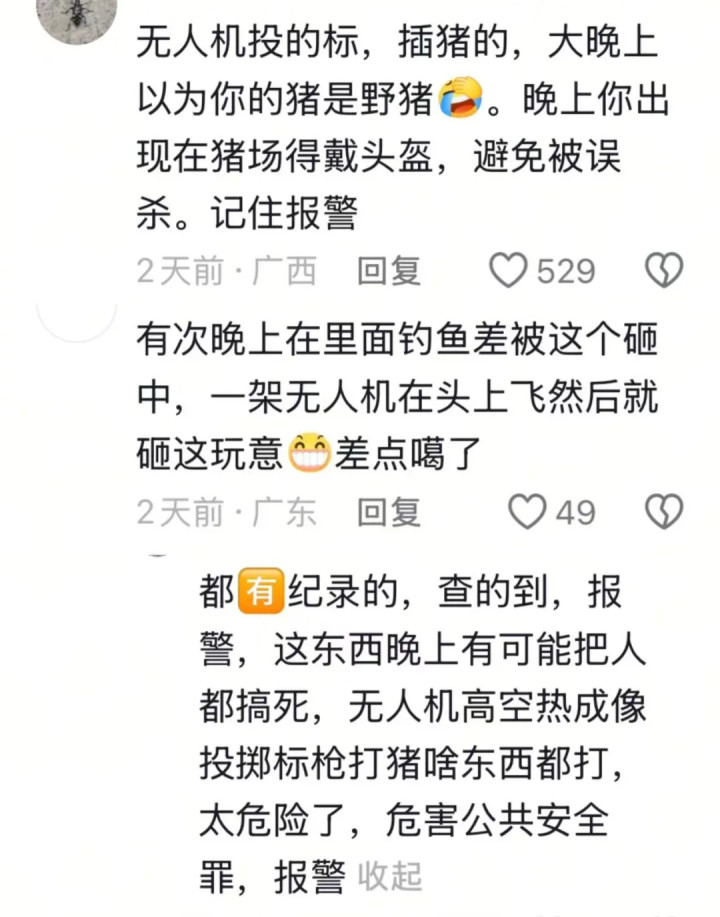 有网友在向先生的视频下评论,建议向先生现在出入猪场佩戴好头盔等护具,并建议他及时报警。但向先生称,对于报警,他有些犹豫,因为养猪不易,担心对方会投毒报复。